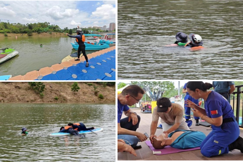 8月22日上午9時(shí),桃花源游客服務(wù)中心聯(lián)合惠州市藍(lán)天救援隊(duì)、惠州市槳板運(yùn)動(dòng)協(xié)會(huì)在桃花源水上運(yùn)動(dòng)中心開展“防溺水專項(xiàng)應(yīng)急演練”。此次演練統(tǒng)籌組織了景區(qū)保安、水上項(xiàng)目全體員工、經(jīng)營業(yè)態(tài)負(fù)責(zé)人等30余人,圍繞“發(fā)現(xiàn)—呼救—救援—醫(yī)療”全鏈條開展實(shí)戰(zhàn)化水上安全救援演練。